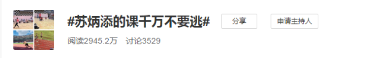 在网友们猜测苏神课程会是什么样时,“苏炳添的课千万不要逃”这一话题也被冲上了热搜,网友纷纷在下评论:这门课怕是以后没有机会逃了!