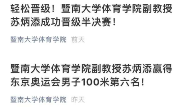 苏炳添此前也透露,他将在奥运会结束后继续回学校报到。暨大体育学院相关负责人表示,待苏炳添9月份开学回校后,会尽力安排“第一课”,争取能让更多暨南学子有机会与苏炳添面对面交流。