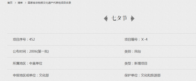 2006年,七夕被列入国家级非物质文化遗产代表性项目名录