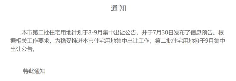 上海第二批集中供地出让延期至9月公布 王磊莹 2021-8-13 来源:周到上海 据上海土地市场官方网站,上海市2021年第二批住宅用地,原拟于8月第二周(8月9日-8月13日)集中出让公告。今日发布相关延迟通知,称将延迟到9月集中发布公告。 获取更多购房资讯,欢迎扫描下方二维码,关注地产新空微信公众号,或加入地产新空“房友俱乐部”讨论区。 来源:周到上海 作者:王磊莹 赞一个 (0)