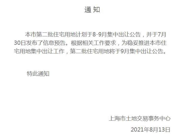 今天,上海土地市场发布公告,第二批住宅用地计划于8-9月集中出让公告,并于7月30日发布了信息预告。根据相关工作要求,为稳妥推进上海市住宅用地集中出让工作,第二批住宅用地将于9月集中出让公告。