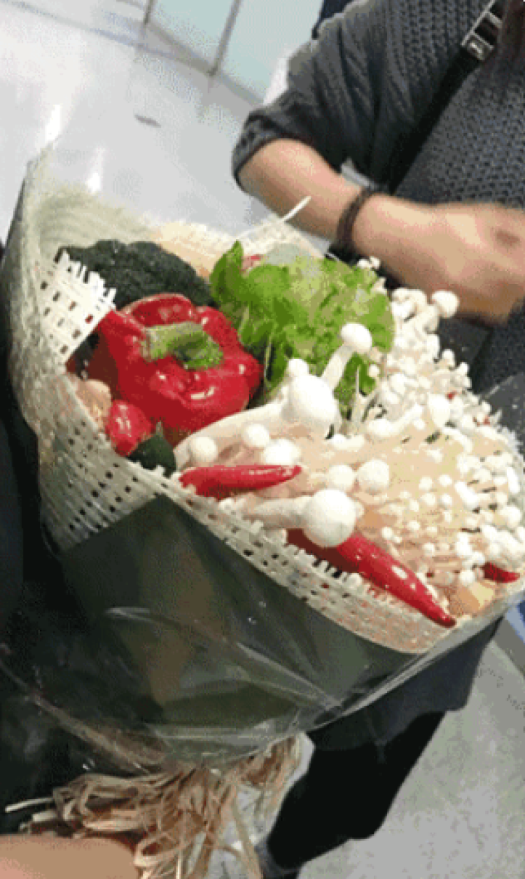 陈伟霆收到过一束奇葩花,其中包括金针菇、甜椒、西蓝花等。因为他喜欢吃火锅,粉丝们才想出这么一个礼物。