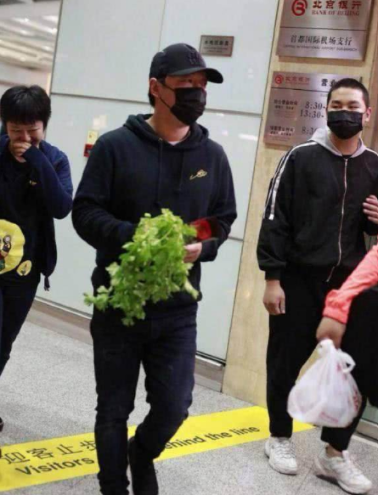 像黄渤,在机场收到粉丝送的一把芹菜。