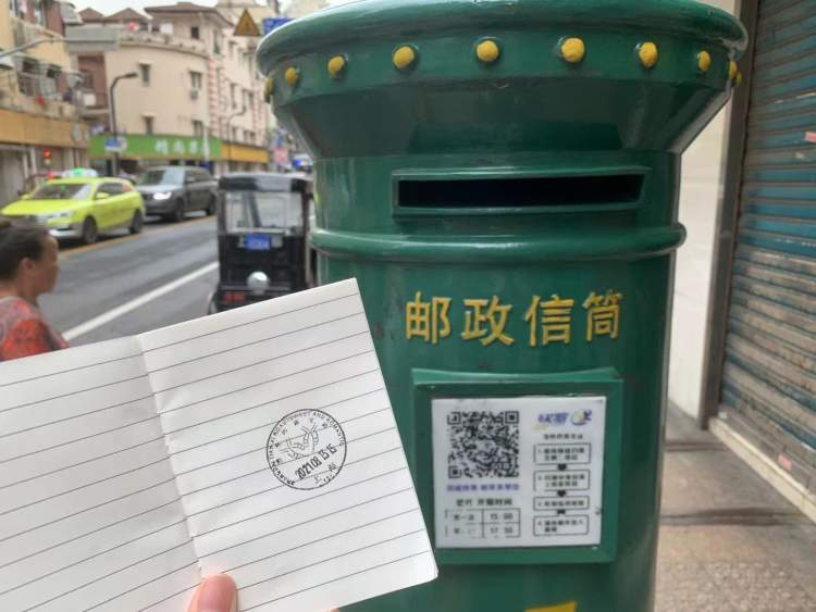 周到君在采访时就遇到了一对专程来打卡的情侣走进邮局,向服务窗口的工作人员询问是否可以“盖章”,得到肯定的答案后,兴冲冲地拿出了准备好的小本子,收获了印章一枚。印章上除了有当天的日期,还有一排弯弯的小字——浪漫的甜爱路。