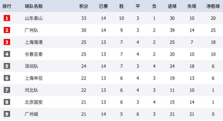 广州赛区第一名山东泰山的积分为33分,第二名广州队积30分。即使苏州赛区的前两名长春亚泰和上海海港能够在周日的补赛中取胜,两队最终的第一阶段积分也就是28分。
