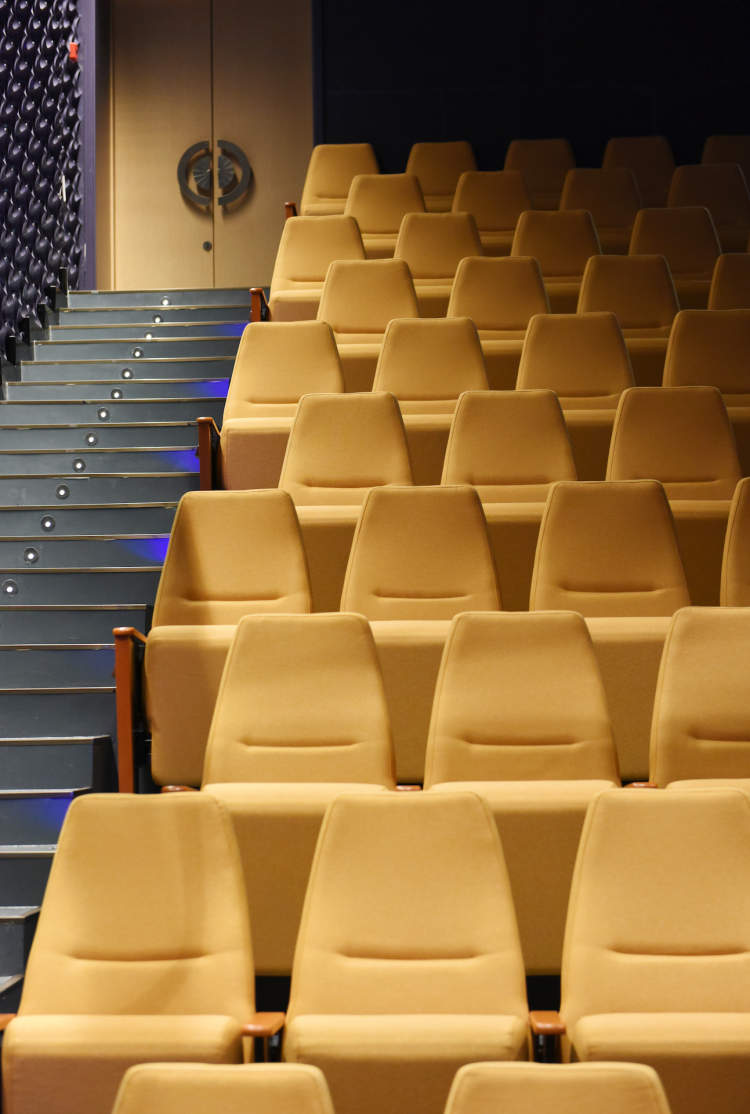 座椅生产厂家为拥有百年历史的世界知名日本厂家KOTOBUKI,厂家在品质上追求安全、强度、防灾与舒适,座高以及打开后座深在反复测试后敲定,适合长时间观赏也不会感到疲劳。小剧场的座椅采用亮色橘黄系列布料,使其整体幽暗的风格拥有同样的活力,且提亮了整个场馆的灯光效果。