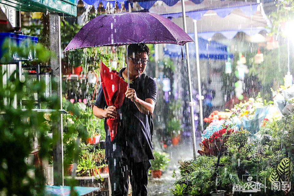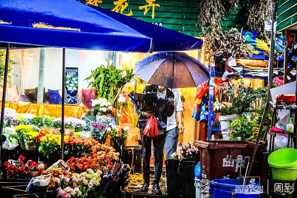 在曲阳花鸟市场,依然有市民冒着雨来买捧花。