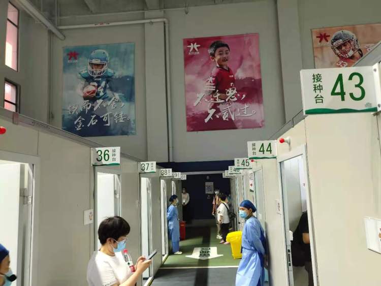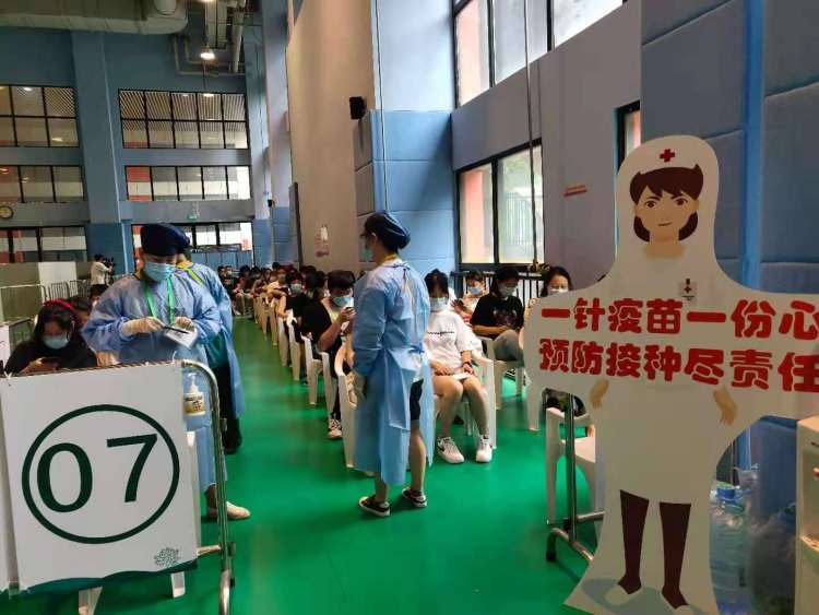 为保障安全接种、有序接种,静安区16个接种点均配有二级及以上医院的医疗保障力量,静安体育中心配有2名医生、2名护士和1名儿科医生,还配有1名心理咨询师。静安区于8月14日8时30分启动15-17岁人群新冠疫苗接种工作,截至8月14日10时,全区共计接种15-17岁人群476人。