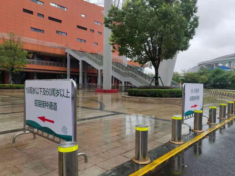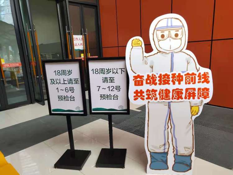 进入静安体育中心,记者看到了两块指示牌,一块指向的是18-59周岁疫苗接种通道,另一块指向的则是18周岁以下及60周岁以上疫苗接种通道。
