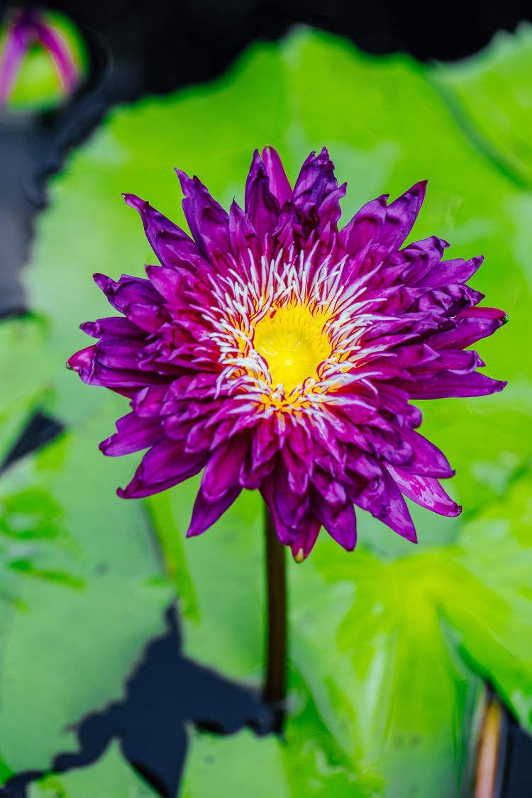 再比如“日冕红”睡莲,拥有深红狭长的花瓣和棕红色的叶片,参加了2018年的国际睡莲水景园艺协会(IWGS)评比,获得最佳热带睡莲品种亚军。