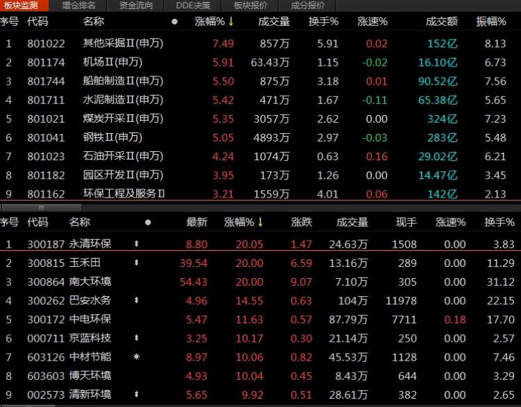 不过,今日环保、钢铁板块逆市大涨,环保股永清环保、华骐环保、玉禾田20%涨停,博天环境、清新环境也涨停。