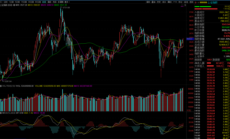 今天,沪深两市涨跌不一,盘中有机硅板块继续拉升,三孚股份(603938)涨停,新亚强(603155)、宏达新材(002211)、新安股份(600596)、合盛硅业(603260)、回天新材(300041)等跟涨;中船系持续走强,中国船舶涨停,中国重工(601989)、中船应急(300527)、中船汉光、久之洋(300516)等跟涨。午后,煤炭概念股再度上行,山西焦煤、山煤国际涨停,陕西煤业、特变电工、兖州煤业等跟涨。锂电池板块也有回暖,最后沪市上涨0.45%,报收3543点;创业板下挫1.76%。两市成交额连续第30个交易日突破万亿,北向资金净流入破百亿。