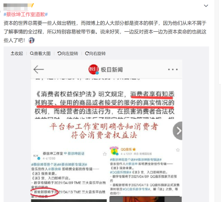 两个多小时后,蔡徐坤工作室的两封信终于发布。