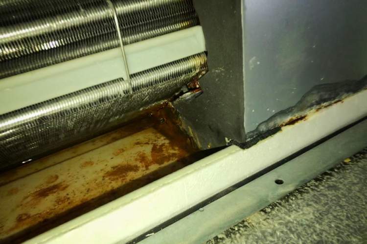 7月份交付的精装修新房,还没有入住,就有业主发现中央空调已生锈,更令人意外的是,在小区整个二期新房里,几乎家家户户的空调都有不同程度的生锈,有的甚至还存在积水、渗水的现象……