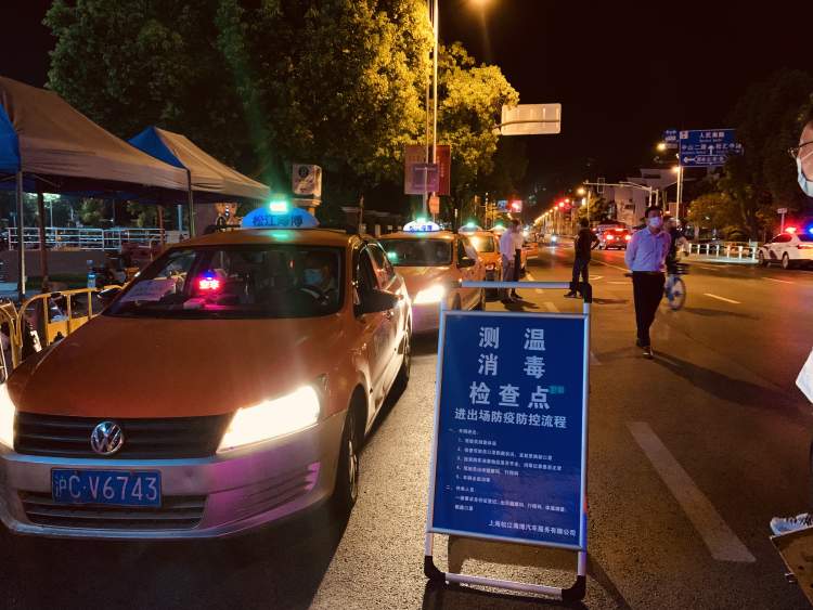 23时开始,松江海博出租公司全体党员以及现场工作人员开始陆续忙碌起来,他们记录抵达车辆的车号,落实车辆有序停靠排队,现场设立消毒临时点,分发保障及防疫物资,同时对接交通委、医院以及现场民警,确保第一时间启动保障任务。