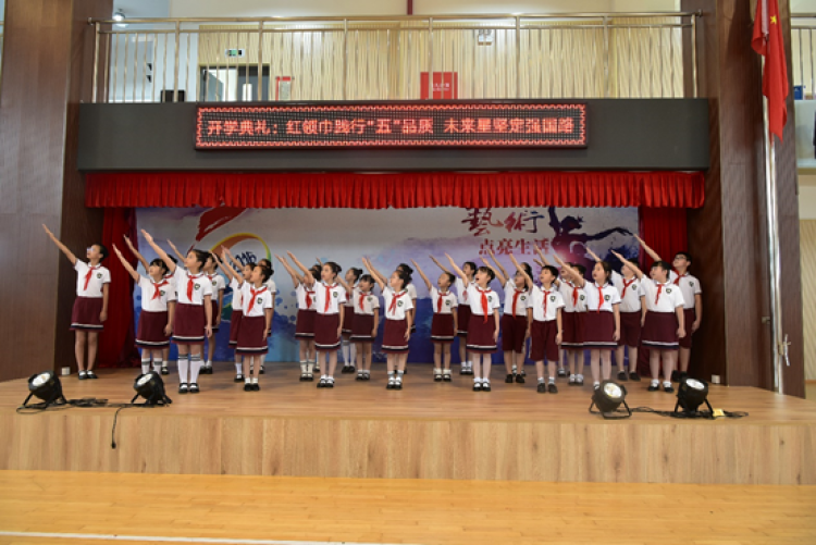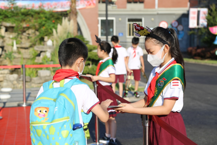 其实,按照往常惯例,松江九亭五小的开学典礼时间是9:40的大课间,但由于开学日天公过于“热情”,再加上近期疫情反复,为了防暑和符合防控要求,今天的开学典礼,九亭五小便采取这样一个特殊的形式举行。