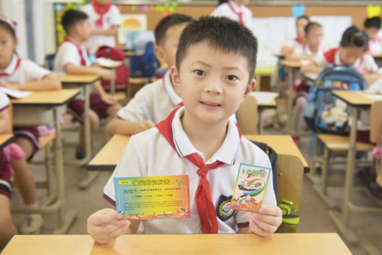 在校门口,学生们会领取到奥运知识问答小卡片,并通过回答问题来获取奥运墨宝积分——孩子们从踏进校门的那一刻起,就得动起小脑筋啦!