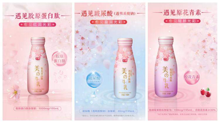 此外,“美の牛乳-胶原蛋白肽”产品采用了德国进口胶原蛋白肽。众所周知,胶原蛋白肽能够针对皮肤细胞,增加皮肤弹性、减少皱纹,真正实现由内而外的美,愈见红润光彩。“美の牛乳-原花青素”在195ml产品中蔓越莓果粉添加量为100mg,含原花青素≥30%,原花青素具有超强抗氧化作用,能够清除体内多余自由基,愈见轻颜光彩,随时随地为自己带来一场花青素SPA。