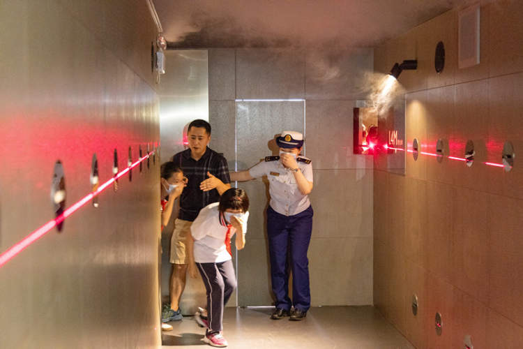 课堂教学结束后,消防员带领同学们来到室外,打开消防车的车门,让同学们亲身体验、参观消防车,并向他们介绍消防车内部结构、不同消防车的用途,分享车内不同灭火救援工具的使用方法。