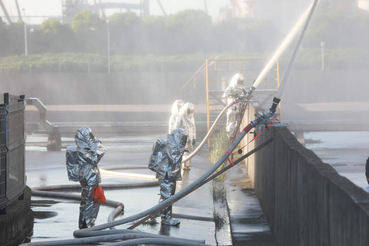 参战化工重型编队,通过侦检检测、冷却防爆、关阀堵漏等战术措施成功处置灾情,其中42米波浪涛举高车、长距离供水车组等一批尖端特种消防车参与作战,大大提升了应急救援效能。