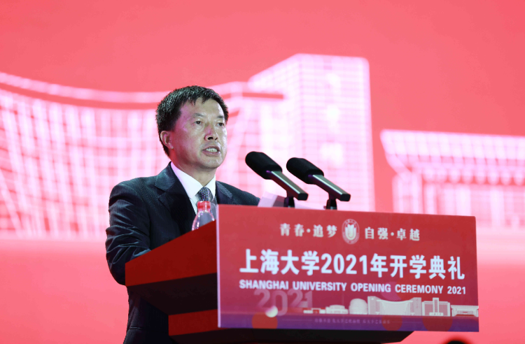 校党委副书记、校长刘昌胜院士,代表全校师生员工对2021级新生的到来表示热烈欢迎。他说, “上大之上”在奋发向上、弦歌不辍的大学精神,在创新为上、勇开先河的改革基因,在蒸蒸日上、快速提升的综合实力;“上大之大”在大气包容、学科齐全的办学环境,在大师云集、实力雄厚的育人平台,在大有作为、英才辈出的使命担当。