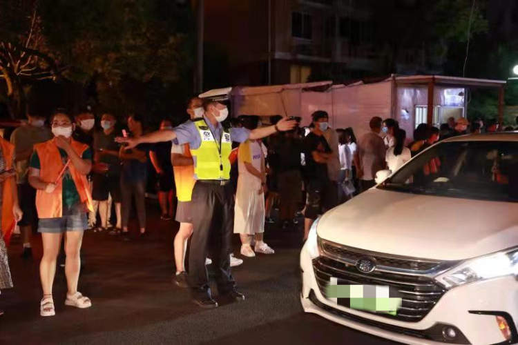 9月2日晚上6点多,第一批核酸检测采样顺利开启,居民们按照事先通知有序前来,一会儿功夫就完成了大半。眼见如此,防疫部门决定趁热打铁直接完成所有居民的核酸检测采样工作,于是临时党支部的民警们又忙活了起来,他们根据时间节点再次陪同志愿者们开展“扫楼”,最终一次便完成了所有居民的核酸检测采样工作。