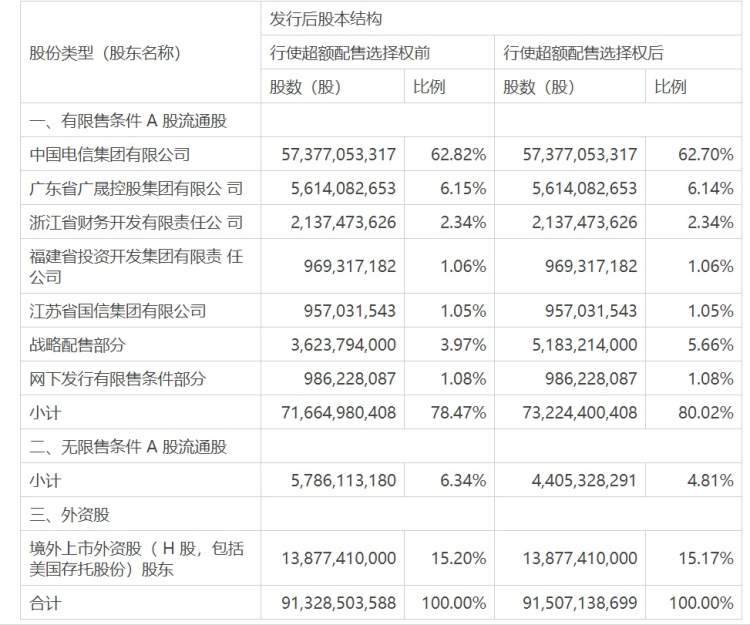 此外,公司按照本次发行价格4.53元/股,在初始发行103.96亿股股票的基础上额外发行1.79亿股股票,约占初始发行股份数量的1.7%。公司由此增加的募集资金总额为8.09亿元,连同初始发行对应的募集资金总额470.94亿元,本次发行最终募集资金总额为479.04亿元,扣除发行费用约3.88亿元后,募集资金净额约475.16亿元。