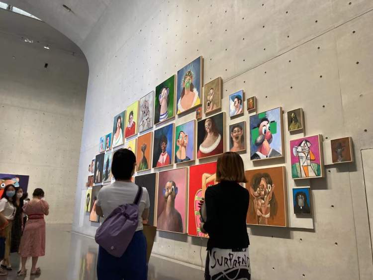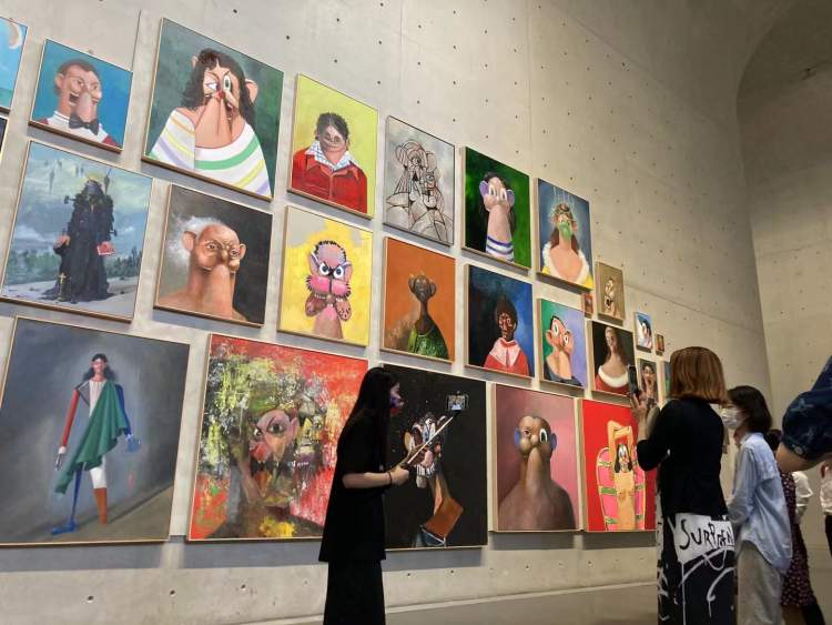 康多的作品里有着对于艺术史、美术馆的重新表达。他用40多年来积累下来的30多幅肖像作品以一种旧日沙龙的方式进行展陈,强大的冲击力填满展墙,延伸人们对美术馆的思考。这些散发着神秘气息又荒诞不经的小丑,演绎着一出出悲喜交加的人生戏剧,难怪很多观众会在这面展墙前驻足良久。
