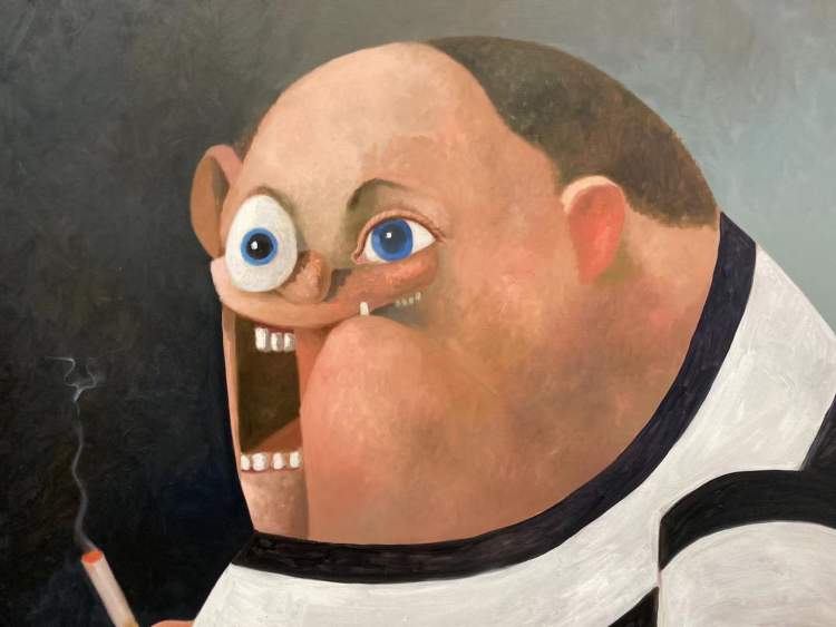 乔治·康多的作品最大特色就是画面人物形象的荒诞不经,夸张、变形、分裂、扭曲,反正全场“没有一张好脸给你看”,但看完之后却觉得非常爽。