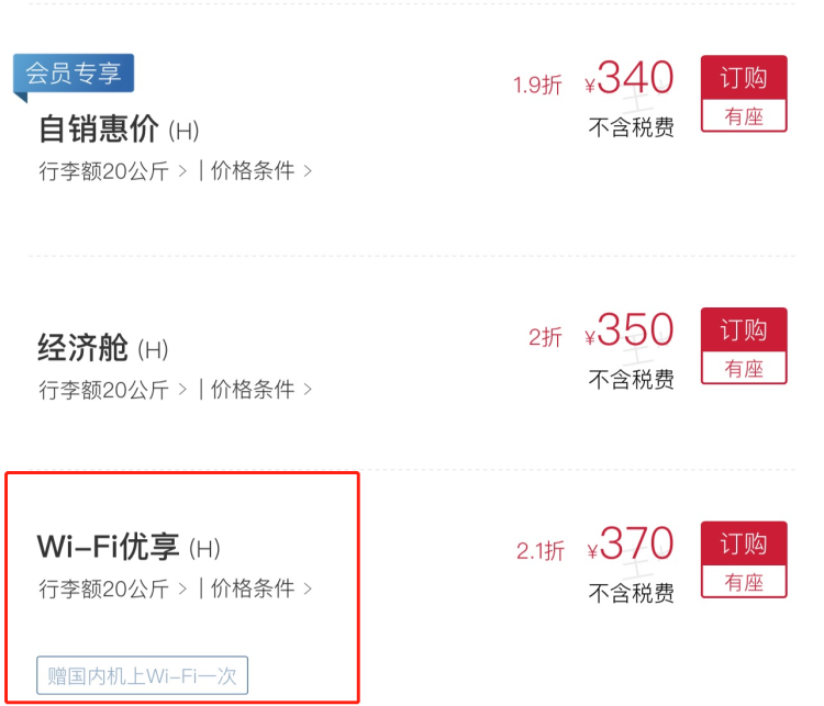但需要注意的是,带有“WI-FI优享”字样的机票与普通经济舱机票相比价格稍高,差价大多在20元,记者也发现了部分航班差价达到40元甚至60元。