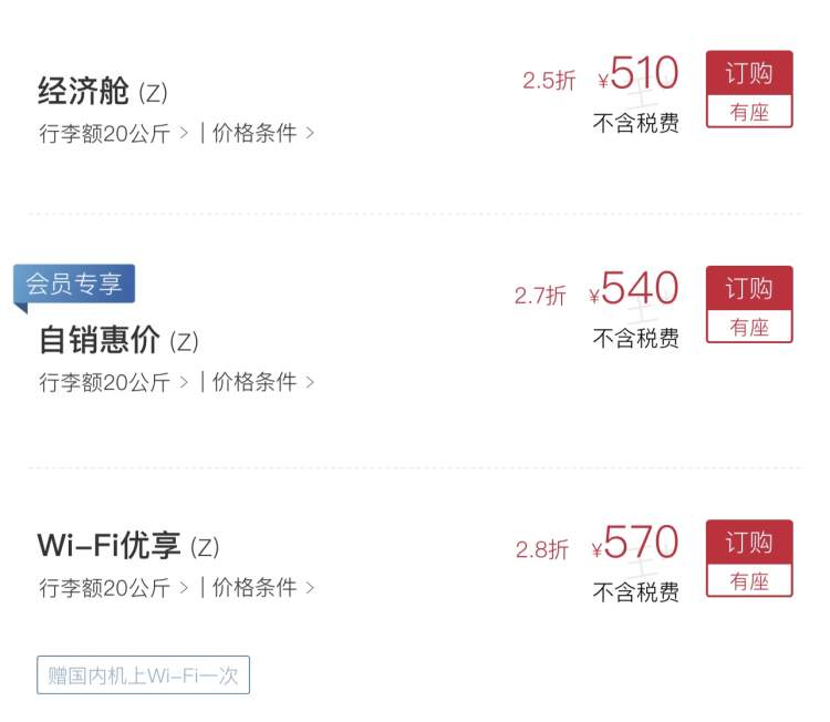 以稍高于经济舱票价的价格,在机票之外获赠国内全航程空中上网券1张。