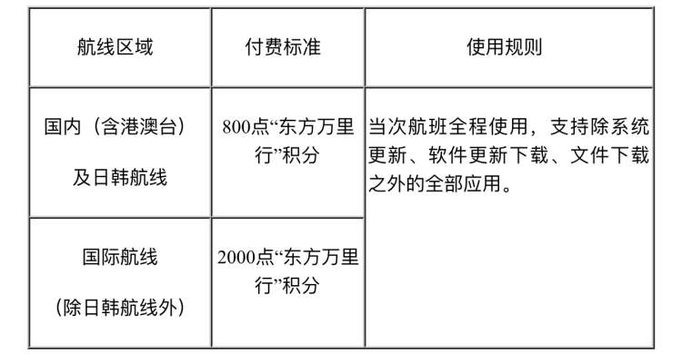 超过10分钟后则需要使用积分支付机上互联网服务,国内航线需要800个积分点,国际航线为2000个积分点。