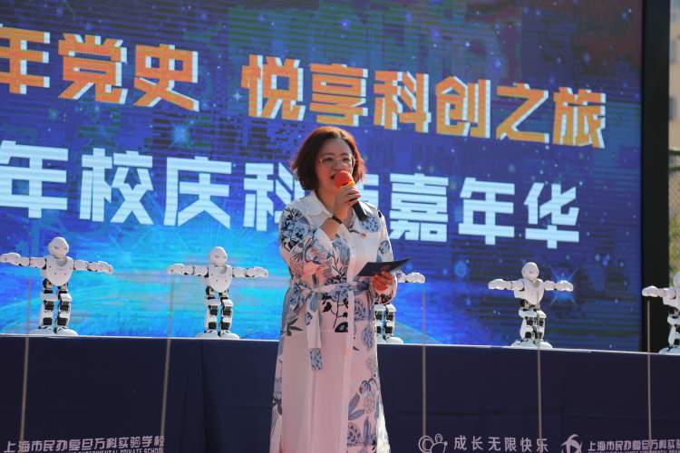 25枚火箭一飞冲天,揭开校园科技嘉年华大幕;机器人与学生现场共舞,演绎新时代少年的活力四射;科创活动与党史教育结合,学生争相打卡积分,学习热情高涨……复旦万科实验学校的校庆日,推出了30余项科创活动,学生每参加一项活动,将得到一张“党史知识卡。