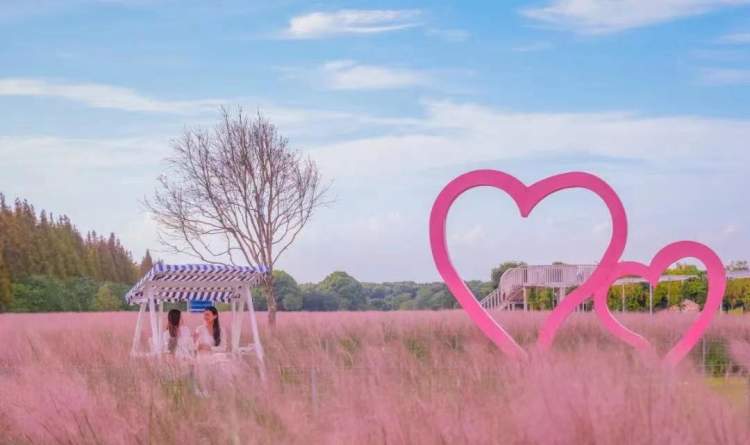 嘉北郊野公园和虹口的彩虹湾公园种植粉黛多年,已经成为沪上粉黛的网红打卡点。嘉北公园在粉黛花海中布置了爱心、秋千等造型,方便市民凹造型,结合公园秋季举办的“稻草文化节”,吸引游客前来秋游。