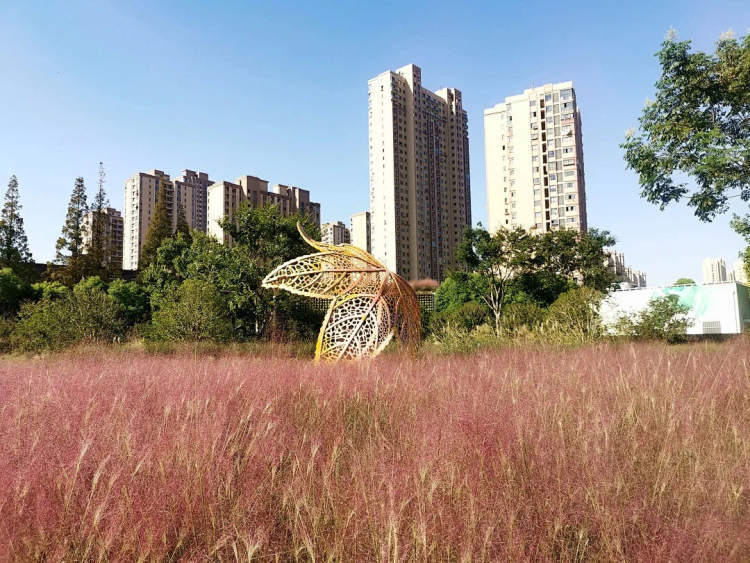 粉黛乱子草是彩虹湾公园的特色植物,整个公园共栽植2000多平方米,贯穿在公园的各个角落,远远看去,犹如粉色迷雾一般,如梦如幻。今年,公园的各个建筑物屋顶上也种上了粉黛,进一步凸显公园的植物特色。