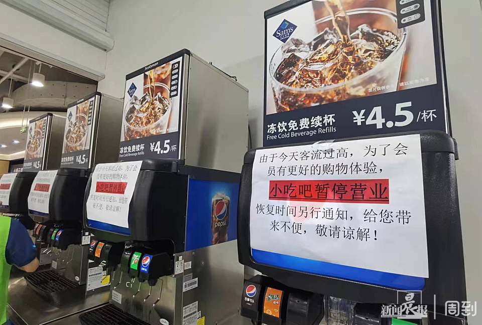开业第一天客流过于火爆,中午时分全国最大的山姆餐吧的小吃吧也出现了暂停营业。