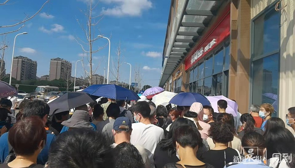 如果在周边停车,步行进入店内呢?起码排队两小时还不一定进得去,维持秩序的工作人员和排队的人群一样在大太阳底下满头大汗。有些市民来到现场看到“这阵仗”就先回去了,打算日后错峰再来。