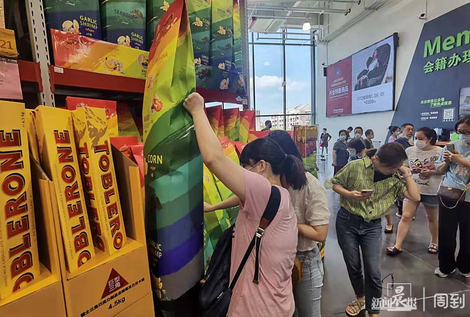 许多顾客的购物车里堆得满满当当,一边购物一边拍照上传朋友圈,大家的心头好各有侧重:猕猴桃、生姜、煎饺、果汁、辅酶、鲜花……“会员店开业都热闹得像不要钱一样。”擦肩而过时,听到有人这样说。