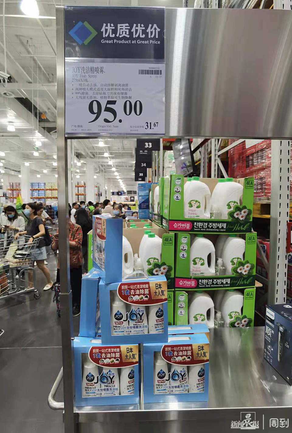 宝洁JOY洗洁精喷雾275毫升3瓶装,山姆价格95元;保洁旗舰店券后89元,不过两者香型不同。