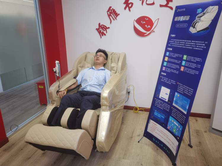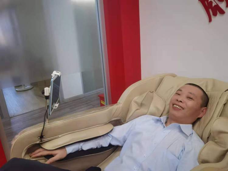 随后,来自864路的驾驶员娄小伟尝也试了下按摩功能。一开始,足底按摩功能的“力道"很足,令他连呼“吃不消,怎么那么怪,我汗都要出来了!”适应几分钟后,在按摩椅播放的舒缓音乐中,他露出了惬意的微笑。