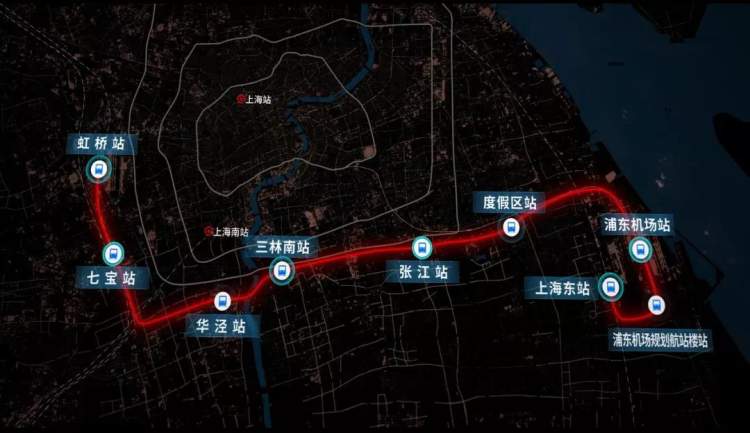 上海轨道交通市域线机场联络线工程起于虹桥站,经七宝站、华泾站、三林南站、张江站、度假区站、浦东机场站、规划T3航站楼站,止于上海东站。全线长68.6公里,其中地下段长56.7公里(含盾构区间49.7公里),地下段占比近90%,计划2024年底基本建成。