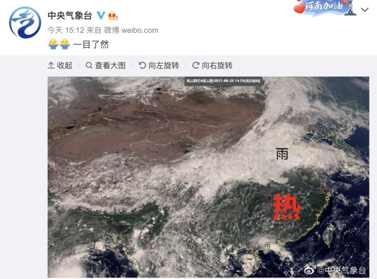最近,全国天气舞台的格局清晰明了:北边雨,南方热。