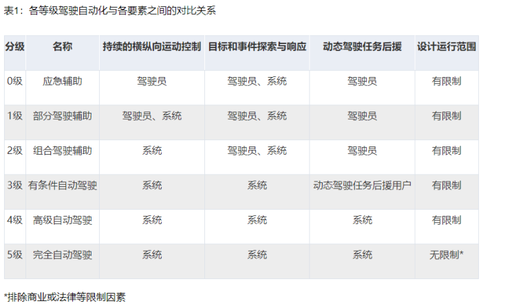 不同等级的自动驾驶系统,在用户角色和驾驶自动化系统角色这两大方面,存在着明显的要求和差异。从分级来看,0-2级三个等级只能称为“辅助驾驶”,分别为应急辅助、部分驾驶辅助以及组合驾驶辅助;3-5级三个等级则分别称为有条件自动驾驶、高度自动驾驶和完全自动驾驶。