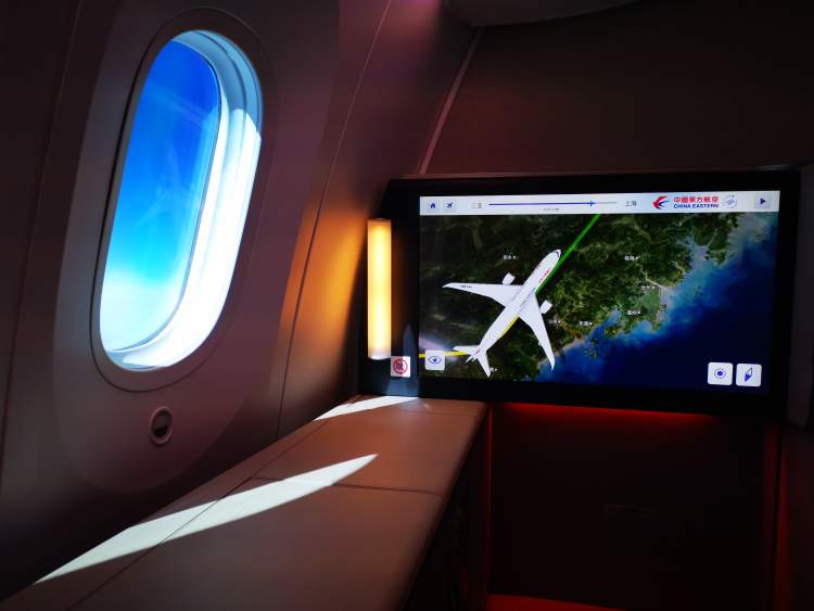 周到君在中秋假期里体验东航777-300ER客机的飞行,许多乘客利用机载WIFI和家人通话,分享空中赏月的奇妙经历。