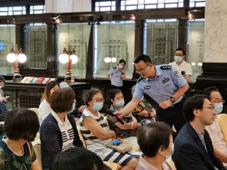 淮海中路派出所孔雨婕,向大家普及了在面对假冒“公检法”时应当如何应对。她提醒在座各位,警方绝不会在线上渠道出示通缉令和警官证,不会通过电话方式来通报案情,更不会提供所谓安全账户来要求转账汇款。