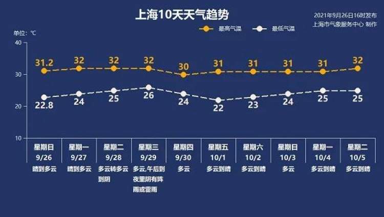 十一前阳光电力满满 防晒和补水是近期主要功课 周到君 2021-9-27 来源:周到上海 本市今天维持晴好天气,早间气温在23-25℃之间,体感较为舒适,预计白天最高气温在32℃附近,相对湿度85%~45%,户外紫外线强,空气较为干燥,请大家出行注意防晒和补水,南到东南风3~4级,中午前后体感较为炎热。 未来几天太阳公公积极营业,除了下周三前后有一次降水过程,其他时间基本都是晴好天气。 来源:周到上海 作者:周到君 赞一个 (0)
