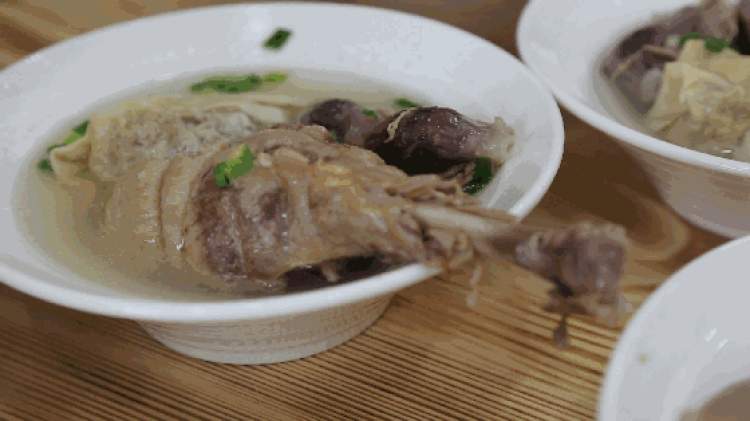 到了德清,就要吹爆这一碗鸭绞面!被棉线扎起来的鸭肉经过三四个小时的大火熬制,吃起来肉质并不酥烂,却更加紧实。高汤里的细面韧劲十足,鸭爪酥软可口,鸭皮Q弹入口即化,鸭胗质嫩耐嚼,鲜味都渗进了骨头里,每一口都回味无穷。