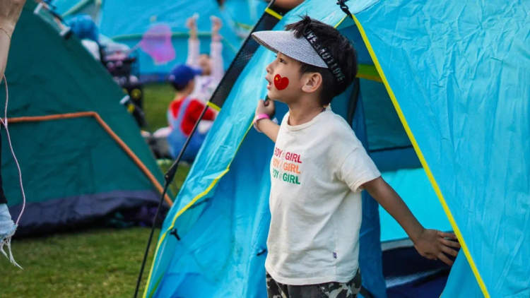 露营节还特别为小朋友准备了狗狗气模,帐篷气模、蹦床和攀岩墙等一系列限定活动装置。