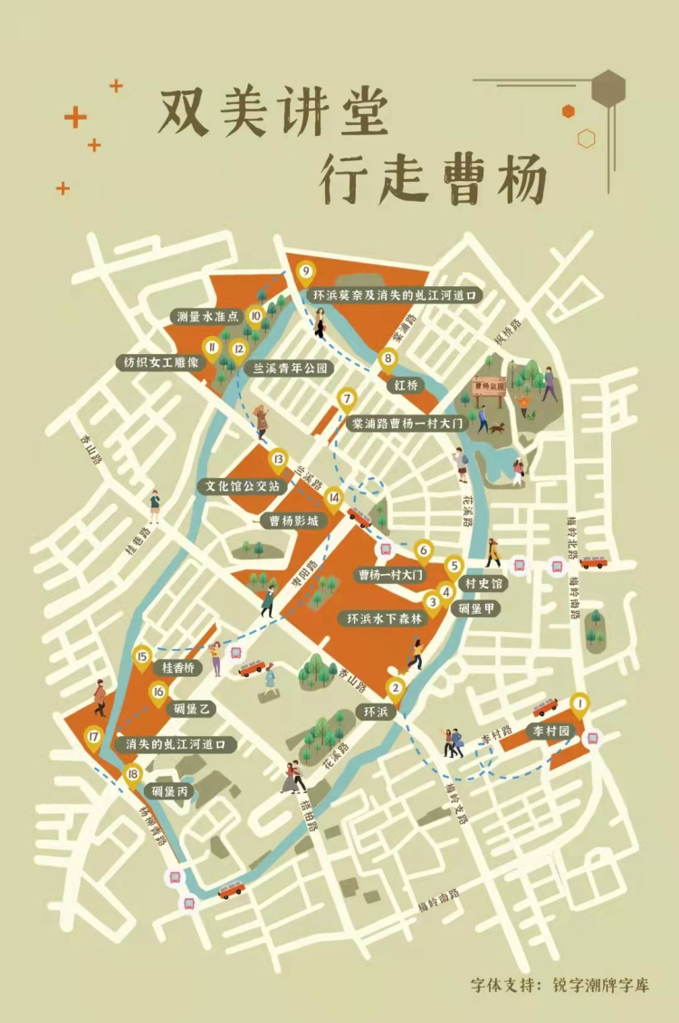 本次活动将招募50位12岁以上青少年及家庭行走曹杨,沿着行走路线,你会经过村史馆、环浜水下森林、兰溪青年公园、纺织女工雕像……与学者一同边走边思,为你普及城市发展的点滴故事,在尚学中心,还可以与专家一同聊街区文化与规划。