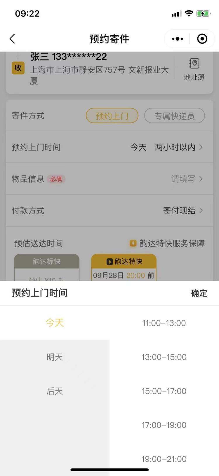 在可以上门取件的时间范围上,顺丰可以选择的最早上门时间为早上8点,其他快递均为早上9点,可以上门的最晚时间基本均为19点,其中只有韵达的上门时间最晚,可至当天晚上21点。